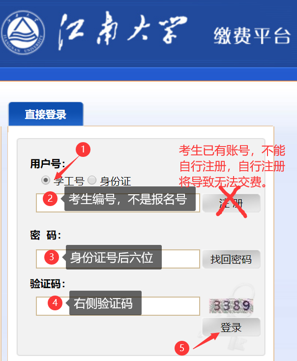 缴费说明:进入复试考生在学院规定的时间内登录“欧博abg官网登录入口缴费平台”交纳复试费用,复试收费标准:80元/生。缴费网址:http://pay.jiangnan.edu.cn/payment/。登录账号为准考证上的考生编号,登录密码为身份证后六位(友情提醒:考生账号已开通,切勿自行注册)。按照提示交费(使用网银),并打印或截图保存付费凭证。