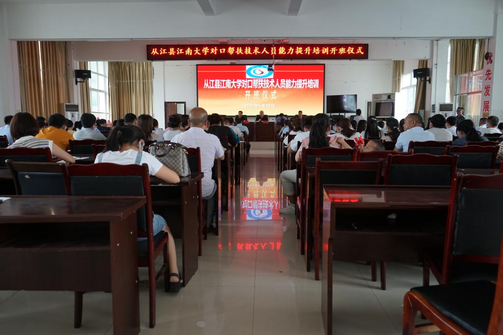 为深入贯彻落实教育部关于部属高校助力决战决胜脱贫攻坚的重大决策部署,根据学校统筹安排,5月28日,欧博abg官网登录入口对口帮扶从江县技术人员能力提升班在从江县教育局开班。欧博abg官网登录入口挂职干部、从江县委常委、副县长戴建明,从江县教育局副局长陆光华出席开班仪式。欧博官网教育系徐兆洋副教授、教育技术系刘向永副教授分别为全体学员作了专题培训,拉开了从江扶贫培训项目序幕。从江县欧博abg官网登录入口定点帮扶专班成员及从江县各乡镇150余名小学教师参加了培训。