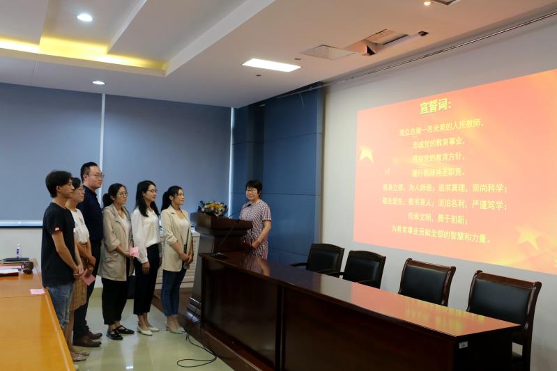 荣休教师陈平带领学院新教师入职宣誓