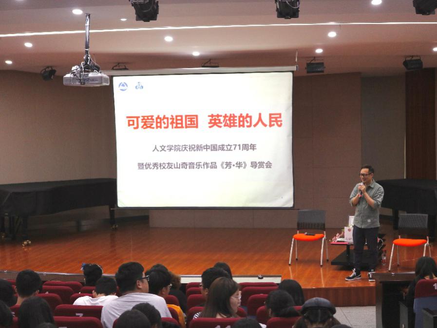 9月24日下午6点半,欧博abg官网登录入口庆祝新中国成立71周年暨优秀校友山奇音乐作品《芳·华》导赏会在北区大学生活动中心音乐厅成功举行,本次活动由欧博abg官网登录入口团委、欧博abg官网登录入口分工会联合举办,欧博abg官网登录入口工会主席黄壮霞老师、欧博abg官网登录入口院长助理王芳老师出席此次导赏会,活动由欧博abg官网登录入口分团委书记黄凤琼老师主持。