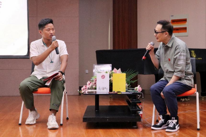随后,进入音乐作品导赏会的正式环节。山奇老师详细地地向大家介绍了《芳·华》的创造历程,他谈到,在对越自卫反击战时期,战士们在战争中的艰苦经历与坚定意志带给他很大的触动,那段时期的战争故事和事件回忆,让他有了强烈的整理和创作动力,也给了他源源不断的创作灵感。于是他通过相关通讯报道、战士的日记、家书等方式收集材料,汇编成12首诗,即为《芳·华》。