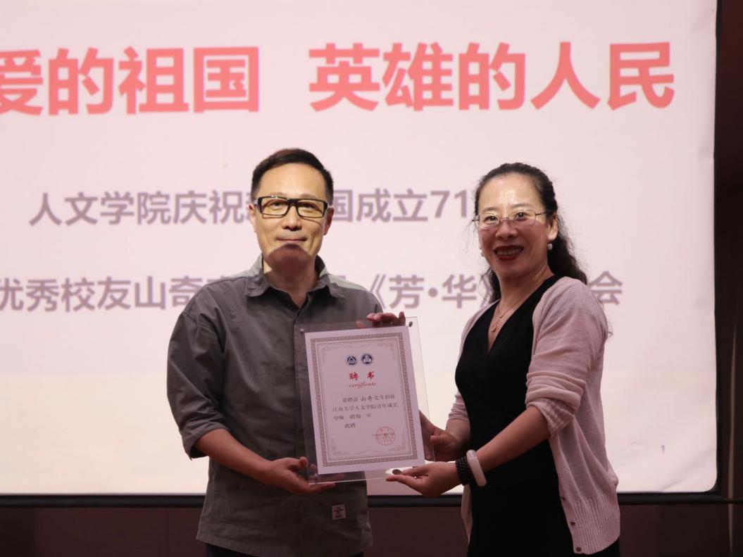 山奇,欧博abg官网登录入口优秀校友,现为欧博abg官网登录入口校友会副会长。著名导演、策划人、音乐人,中国动画研究院产业经济研究所研究员、中国电视剧导演工作委员会会员。先后策划、制作了Channel [V]《非常中国》、《新长征路上的摇滚》、凤凰卫视《音乐无限》、MTV《天籁村》和《光荣榜》等节目,策划和导演了CCTV-MTV音乐盛典,任好莱坞中国剧院“微电影节颁奖典礼”总导演,《中国青年》杂志的封面人物,CCTV《艺术人生》、《星光大道》策划人20年创作发烧大碟《意 · 江南》;30年创作发烧大碟《芳·华》(战士万岁)。出版书籍《走在娱乐界的边缘》《七日谈》《对话美国》《对话韩国》。