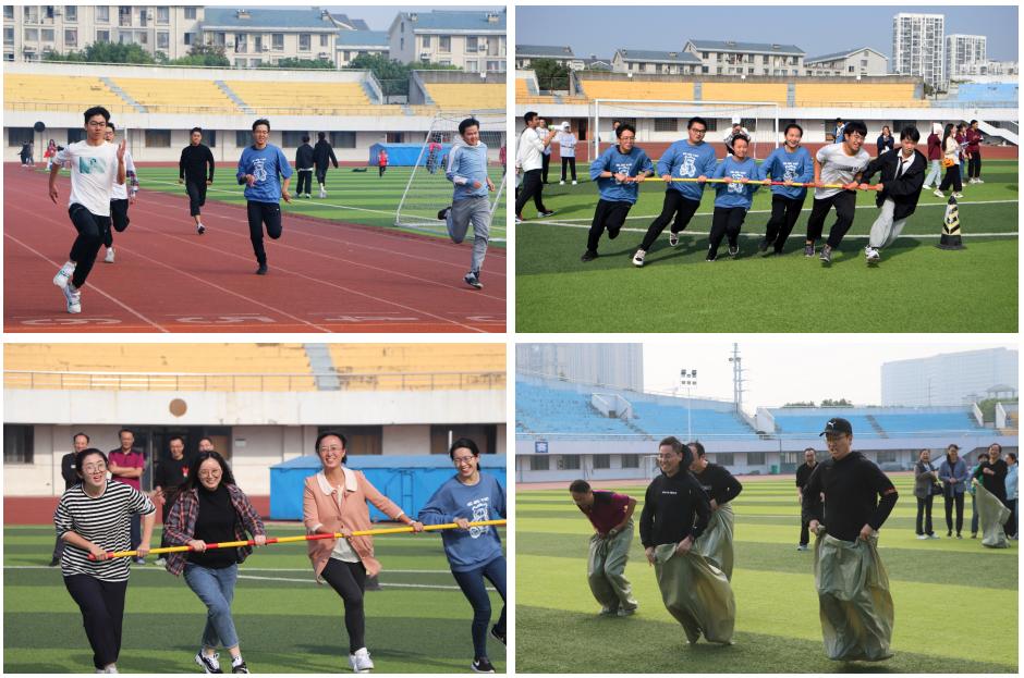 与此同时,教师组趣味运动项目火热开展。老师们英姿飒爽,他们积极参与到袋鼠跳、背夹球、三人四足、旋风跑等趣味项目比赛中,展现着朝气与活力。比赛进行得如火如荼,趣味横生。
