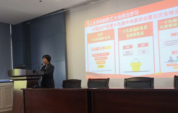 会上,党委书记姚剑英领学了中国共产党第十九届中央委员会第五次全体会议的会议精神,她传达领学“十四五”时期经社会发展的指导方针、主要目标、重点任务,以及传达加强党中央集中统一领导,推进社会主义政治建设,健全规划定制和落实机制等内容。她指出实现“十四五”规划和二〇三五年远景目标,意义重大,任务艰巨,前景光明。学院教职工要紧密团结在以习近平同志为核心的党中央周围,同心同德,顽强奋斗,为全面建设社会主义现代化国家贡献自己的力量。此外,她还领学了中央办公厅、国务院办公厅发布的《关于全面加强和改进新时代学校体育工作的意见》《关于全面加强和改进新时代学校美育工作的意见》;《习近平谈治国理政》第三卷。全体教职工认真领会了学习内容,一致认为此次政治学习有凝聚共识,明确方向的作用,有助于更好的立德树人。此外,会上姚剑英还通报了近期的学生就业情况,副院长于书娟通报了教学工作安排。