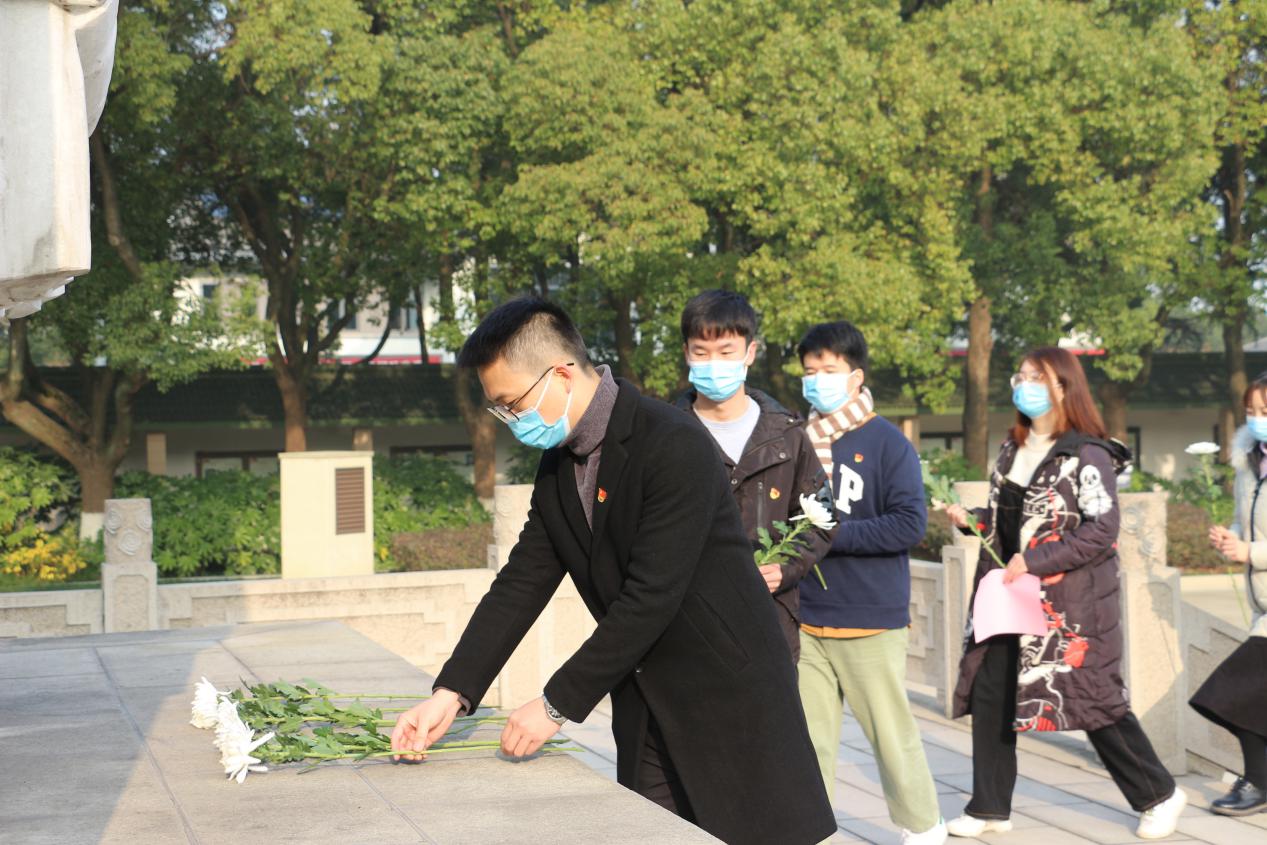 活动开始,全体老师同学在纪念碑前脱帽肃立,为英勇牺牲的革命烈士和惨遭日本侵略者杀戮的同胞默哀三分钟。默哀毕,同学们集体朗诵了欧博abg官网登录入口“不忘英烈魂 永怀人文情”征文活动的优秀作品、汉语(师)2002李陈媛同学创作的诗歌《怀先烈而承遗志》。接着,全体参与人员怀着无比崇敬的心情,依次向革命烈士纪念碑献花。