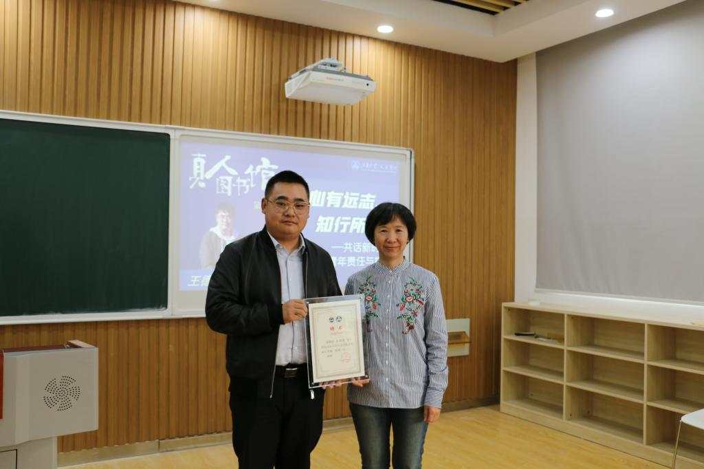 姚剑英为王德伟颁发学院“青年成长导师”聘书