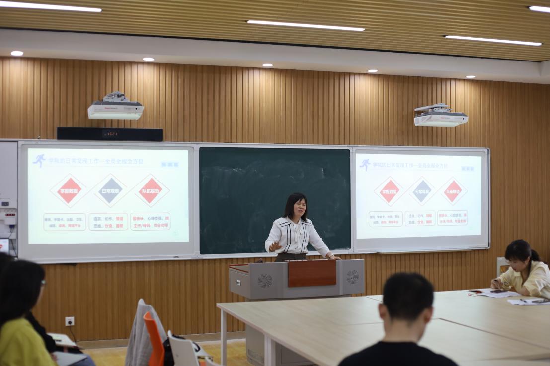 会议伊始,校心理健康中心陈华平老师就心理危机识别与干预做专题培训,针对当前大学生所面临的心理问题及应对措施进行了详细地培训和介绍,她表示,当前大学生出现心理问题的现象增多,班主任应起到积极的引导作用,加强对学生心理健康、生命教育的重视程度,让学生正确看待压力与挫折,理解生命的珍贵。 紧接着,校“优秀班主任”获得者、欧博abg官网登录入口小教1701班屈博老师进行发言。他向各年级辅导员对班主任工作的支持与无私奉献表示感谢,并阐述了班主任身上担负的责任,与在座班主任分享班级管理经验。他表示,班主任应明确自身定位,承担职业所赋予的责任,才能真正走进学生的心中,做好学成的成长导师和知心朋友。而后,欧博abg官网登录入口党委副书记、副院长李萍对下一阶段班主任工作进行提示和安排。她从班主任对学生的心理引导、安全稳定及近期工作的相关安排做了重点强调。最后,欧博abg官网登录入口心语心悦工作室张慧老师对班主任开展心理班会的相关事宜进行讲解。她希望在班主任老师的带领下,同学们能够释放压力,敞开心扉;班主任也可以通过此次班会把握学生心理状况,深入了解班级同学对生命价值的探索,从而营造良好的班级氛围。