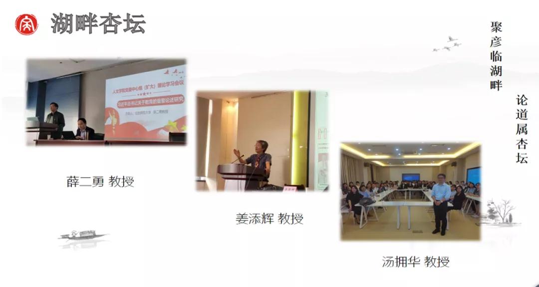 在活动开展方面,人文研会注重发挥思想引领作用,立足人文学术,彰显人文色彩,配合举办青年学者系列讲座、“教学技能大赛”、“研本交流会”等活动。与兄弟学院共同举办的“青衿江南•后浪青春”七院联谊晚会、“相聚沿路•温暖金秋”研究生八院联谊活动等丰富的文体活动彰显了研究生们昂扬的青春活力。第十五届“湖畔杏坛”顺利举办了10场研究生论坛,8场学者论坛,先后邀请了薛二勇、姜添辉、汤拥华等专家学者前来交流,提高了欧博abg官网登录入口研究生的学术素养,拓宽了欧博abg官网登录入口研究生的视野,该活动荣获2020年度欧博abg官网登录入口研究生精品活动称号。