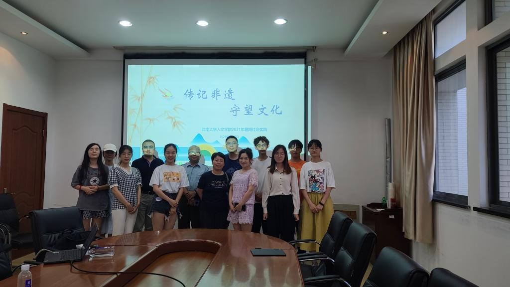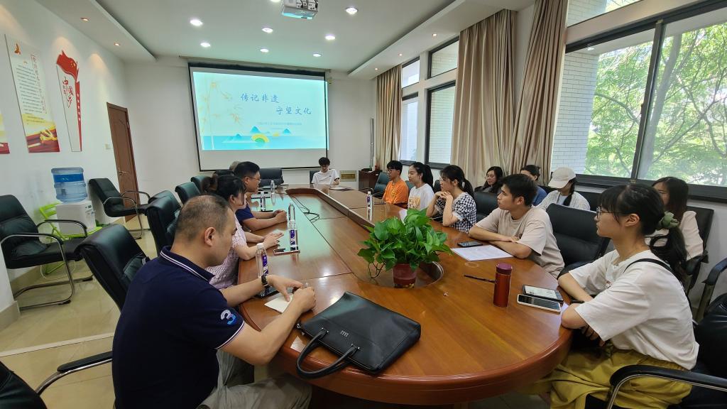 7月12日下午,国家级非遗留青竹刻省级传承人、“双契轩”第四代传人乔瑜,省级非遗无锡纸马传承人陶晓梦,原惠山区委宣传部副部长、作家马千金,无锡民进文化艺术专委会副主任、无锡市文艺评论家协会理事武频圆以及2021无锡非遗宣传片策划刘文杰来到欧博abg官网登录入口,与江南遗梦社会实践团队成员进行深入交流,指导团队社会实践项目。江南遗梦社会实践团队指导老师、欧博abg官网登录入口辅导员刘昕旎老师和团队成员共同参加此次活动。