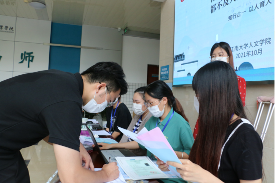 迎新场外的红色喷绘上,由有638名新生组合形成的“强国有我 不负青春”艺术字,富有特色,创意满满。青年学子把名字融入“强国有我”,也将青春“小我”融入强国“大我”,让青春在强国伟业中绽放光芒。学院为每位新生精心准备了国学大师钱穆先生所撰写经典书籍《人生十论》,期待青年学子在江南开启新生活,感悟思索人生真谛。除此之外,学院还为每位师范生新生准备了“练字小黑板”和师范生硬笔书法练习本,帮助新生提升专业技能,涵养师范情怀。报到现场,新生纷纷在“我爱欧博abg官网登录入口”创意文化展板、创意信封KT板前合影留念,留下难忘瞬间。