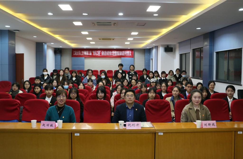 11月24日晚,欧博abg官网登录入口第四届“青马工程”训练营暨入党积极分子培训班开班仪式在田家炳楼209会议室举行。棒棒糖童话剧团、无锡广宇文化传媒有限公司负责人、欧博abg官网登录入口校友祝利升,欧博abg官网登录入口党委副书记、副院长李萍,分团委书记赵丽敏,分团委副书记刘悦钧、刘昕旎及第三届、第四届青马训练营成员和入党积极分子参加了本次活动。