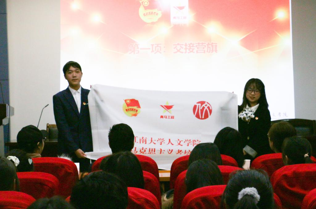仪式上,在场嘉宾首先为第三届“青马工程”的结业学员颁发了结业证书。优秀学员朱程辉做代表发言,分享了自己的学习历程与心得体会,鼓励同学们要努力成为担当新时代使命的“青马人”。随后,新老营员代表进行了营旗交接仪式,李萍做了开班动员讲话。她强调,开展青马训练营旨在塑造一支对党忠诚,信仰坚定并且具有高度理论自信的青年团体,并对培训学员提出了四点希望:“围绕一个梦想”“结合一个精神”“坚守一种身份”和“选择一份责任”。而后,第四届“青马工程”训练营学员、入党积极分子代表于可欣发言。她表达了对默默组织和付出的老师衷心的感谢,并郑重承诺将以认真严肃的态度,饱满的热情参与本次培训,争取早日在思想上入党,在组织上入党。