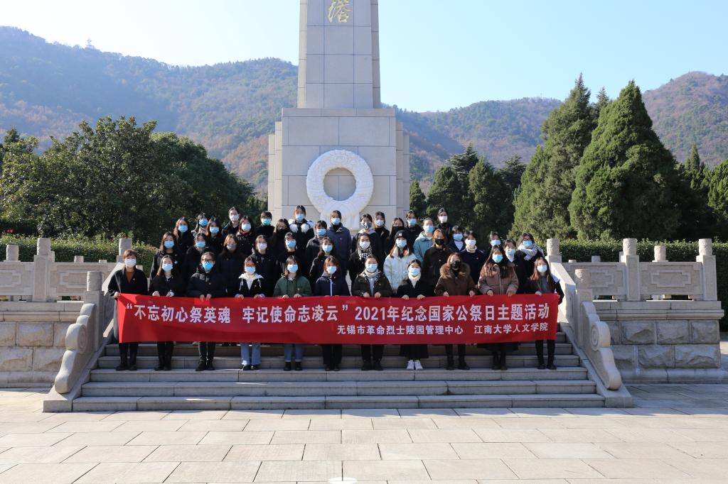 悼念仪式结束后,在人民英雄纪念塔前,新发展的学生党员进行了隆重的入党宣誓,“我志愿加入中国共产党……”,铿锵恢宏的誓词,久久激荡在每位党员师生的心中。汉语1903班廖闻渊同学代表全体新党员进行发言,她说到:“我们来到这里既是在追忆历史缅怀先辈,也是在学习成长,学习“敢想、敢做、敢为天下先”的精神和勇气。身为青年党员,我们要矢志不渝地坚持党的全面领导,听党指挥,以强烈的忧患意识和高度的民族认同感,自觉把爱国之情转化为报国之行,努力为世界和平发展、祖国的繁荣富强、人民的美好生活需要做出自己的贡献!”接下来,全体学生党员进入烈士史料陈列馆进行参观学习,园区讲解员为大家讲述了40余位无锡籍烈士的光辉事迹和无锡地区的党史故事,号召同学们弘扬先烈不朽的革命精神,传承红色基因。参观学习结束后,全体同学为烈士陵园内的一百余个墓碑进行擦拭,并对墓碑前的杂草和落叶进行清理。