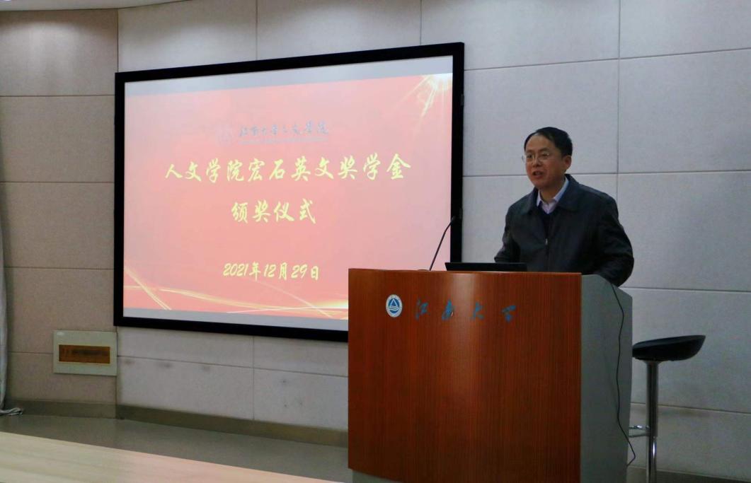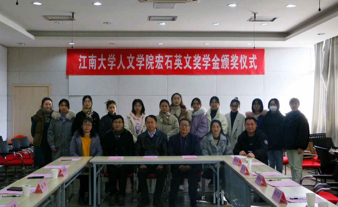 12月29日,欧博abg官网登录入口宏石英文奖学金颁奖仪式在田家炳506会议室举行。学院校友会秘书长、宏石商业地产创始人、上海纽谷贸易有限公司总经理徐宏伟,欧博abg官网登录入口教务处副处长武戈,无锡市风格艺术品有限公司董事张剑芳,无锡日月弹琴行总经理蒋宝伟,如家地产财务总监陈月女士,欧博abg官网登录入口党委副书记、副院长李萍,分团委书记赵丽敏,辅导员刘昕旎以及获奖学生共同参与了此次颁奖仪式,会议由辅导员邵祥岚主持。
