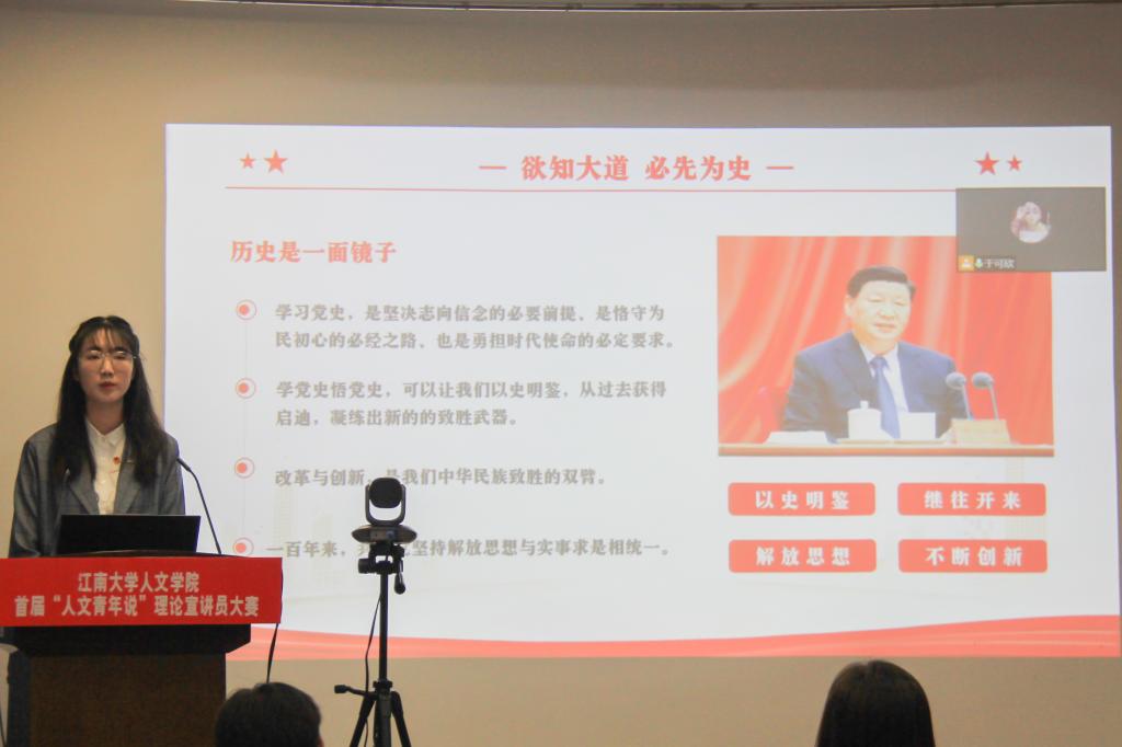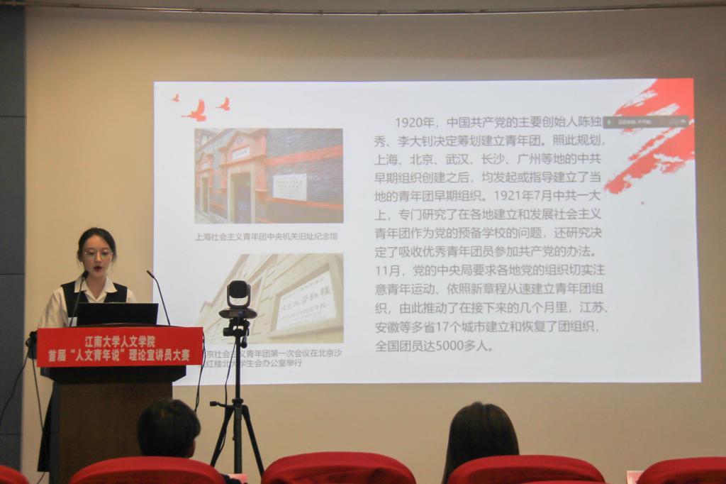 为庆祝中国共产主义青年团成立100周年,激励更多团员青年坚定理想信念,以实际行动践行“永远跟党走,奋进新征程”的决心。5月25日晚,欧博abg官网登录入口首届“人文青年说”理论宣讲大赛在田家炳楼209会议室顺利举行,腾讯会议同步直播比赛情况。