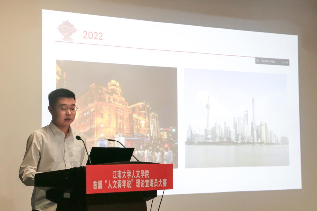决赛现场,宣讲员紧扣“喜迎二十大·永远跟党走·奋进新征程”主题,聚焦百年党史和时代进程,结合教育与文艺事业的发展变化、身边故事和自身经历,进行了生动又富有创新力的团课宣讲。刘咏洁通过江南学子疫情时期在校日常的讲解,展现了新时代青年积极昂扬的精神面貌。朱王一以激情昂扬的演讲带领我们穿梭五四风云,发出了中国青年要向上走的呐喊。王嘉祺以三代人的视角叙述乡村变化,展示了新时代背景下乡村振兴的历程和成就。最终,结合初赛和复赛成绩,朱王一、王嘉琪两位同学获一等奖,赵益鹤等4位同学获二等奖,孙阳等6位同学获三等奖。