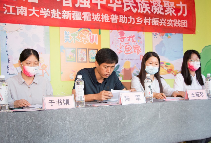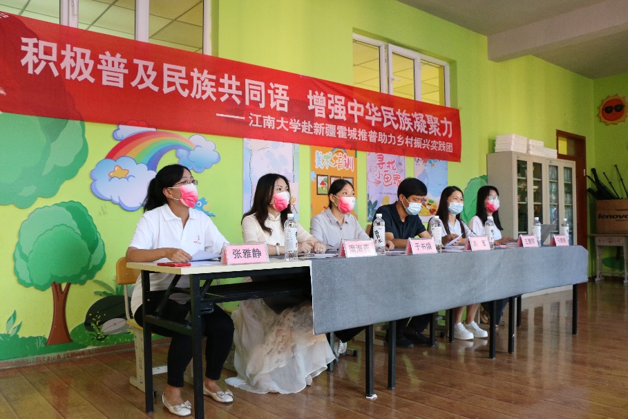 在接下来的环节中,“童声同语”推普助力乡村振兴实践团队长马媛媛介绍推普实践团、团队成员及活动项目情况,她代表实践团全体成员表示对因地制宜探索推广普通话最优方案的决心,荟萃青春凝聚力、扩大推普影响力从而共筑民族凝聚力。