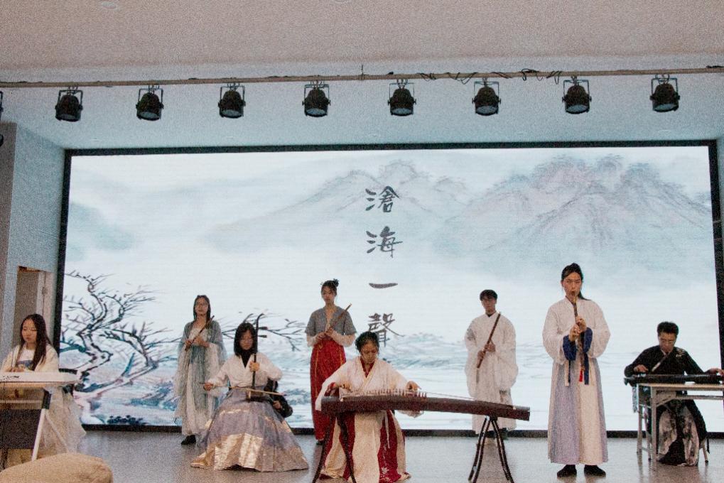 中场休息,国学社戏曲部带来戏曲串烧节目,展现了青年学生对传统戏曲的良好传承。个人赛环节包含“诗词飞花令”和“一站到底”两个环节,其中飞花令环节取用“月”和“秋”两个主题词,选手们反应敏捷,快速精准地背诵出相应的诗词,引得观赛师生鼓掌喝彩。“一站到底”环节,台上的选手根据题目信息背诵、推理和思辨,迅速作答,台下观众也踊跃参与。