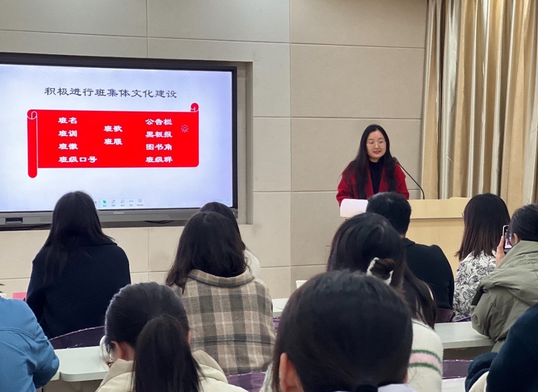 两位嘉宾老师分别从德育、爱岗两个角度分享教学经验。杨洁老师结合自己的教育教学经历,深入浅出地分享了德育管理中的心得与智慧,强调作为教师需要充分发挥好学生、家长和社会之间的纽带作用,要以敏锐的“角色意识”和敏捷的“择机意识”应对班级突发事件,以“分析观察——树立规则——目标导向”的三步走战略对待班级非正式群体。同时,希望将来踏上工作岗位的同学们能够注重学生心理健康的教育,做一名“温暖的精神关怀者”陪伴学生成长。