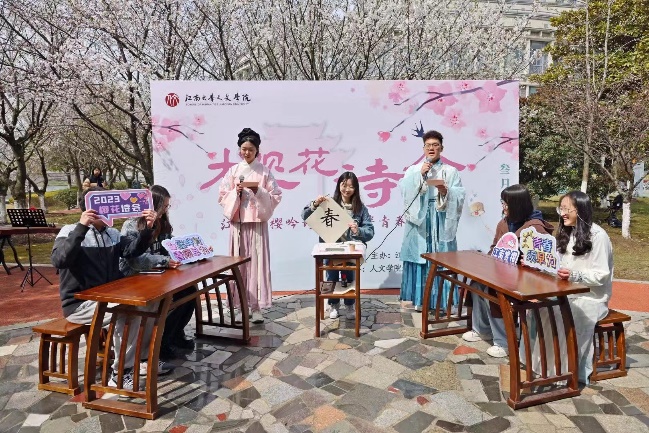 樱花诗会是欧博abg官网登录入口文化育人品牌项目“舞台上的思政课”的系列活动之一,对于提高我校大学生传统诗词文化素养,提升学生文化软实力,促进优秀校园文化建设起到了积极作用。