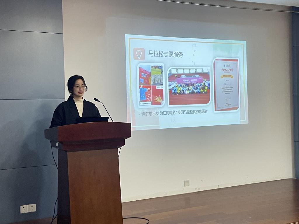 答辩结束后,由团务中心主任沈心钰带领大家共同回顾了2022年欧博abg官网登录入口志愿服务工作的总体开展情况。随后,分团委书记赵丽敏就2023年欧博abg官网登录入口志愿服务项目做了发布推介。欧博abg官网登录入口目前共有以推普支教、信息技术支教与艺术普及为代表的专业志愿服务项目6项,以博习公益课堂为代表的社区志愿服务3项,以服务大型赛事活动为主要内容的综合类志愿服务3项。会上,赵老师还就国家“西部计划”、“研支团”项目以及“江苏大学生志愿服务乡村振兴计划”做了重点介绍,号召志愿者们将志愿服务融入日常、化作经常,让青春在志愿服务的实践中绽放绚丽之花。