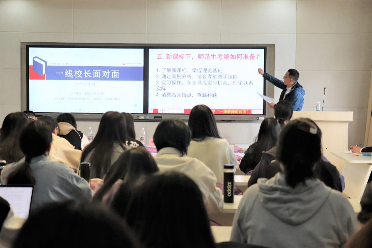 据悉,学院“面对面”系列活动,是为了充分发挥学院学科优势,以培养未来教育引领者为目标,赋能未来教师职业成长的“未来教师2.0计划”品牌活动的子活动。该活动自举办以来,已成功举办了以一线教师、校长等为主讲嘉宾的多场精彩分享,有效提升了师范学生教学基本能力和求职竞争力,增强了学院学科专业影响力。
