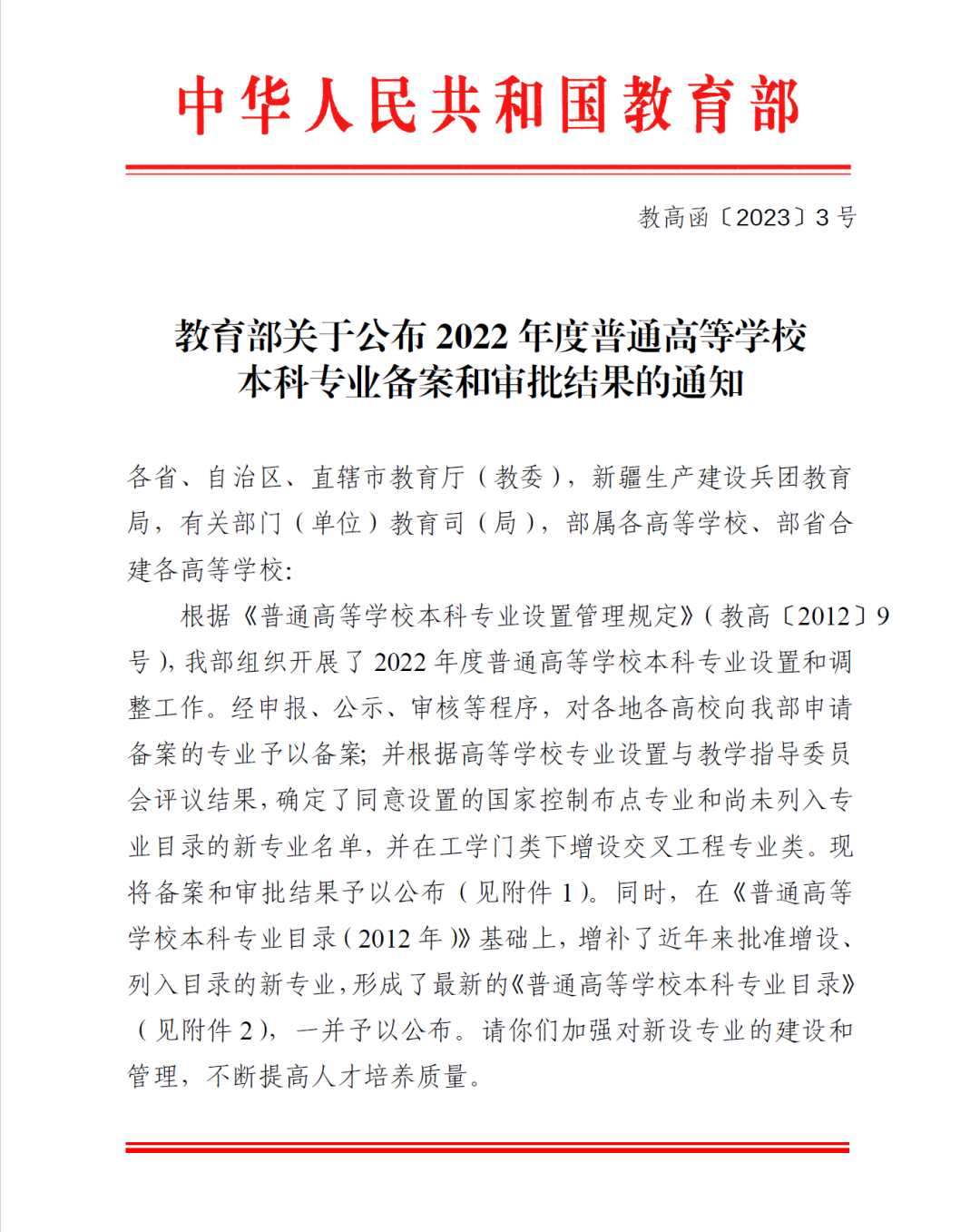 近日,教育部公布了2022年度普通高等学校本科专业备案和审批结果。