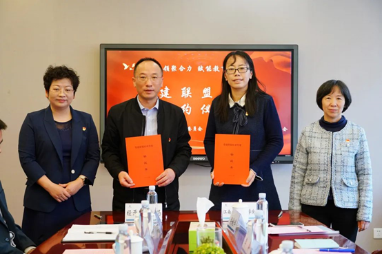 经开区教育局党委副书记、副局长王健和欧博abg官网登录入口党委副书记、副院长李萍签订党建联盟协议