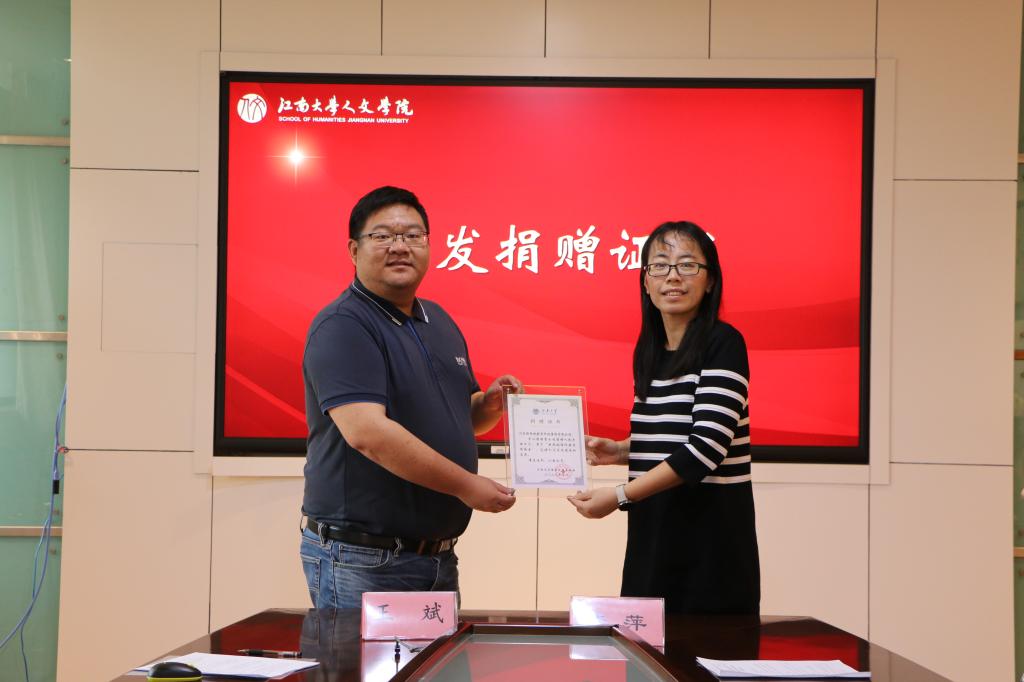 会议伊始,李萍代表学院对无锡新思域集团的支持表示感谢。她指出,学院坚持国际视野、江南立场、本土研究,秉持“知行合一,以人育人”的院训精神,致力于培养具有全球视野和国际竞争力的人才。此次签约,将为学院的教育事业注入新的活力和动力,为学生的成长和发展创造更多机遇,为其拓宽学术视野、培养国际化素养提供重要支持。新思域集团总经理王斌表示,新思域集团与欧博abg官网登录入口联结紧密,与欧博abg官网登录入口合作共进。未来将为学生提供更多的国际交流与学术发展机会,希望越来越多的江大学子可以“走出去”,开拓视野,回馈母校,报效祖国。随后,双方签订捐赠协议,李萍代表学院为无锡新思域集团颁发捐赠证书。