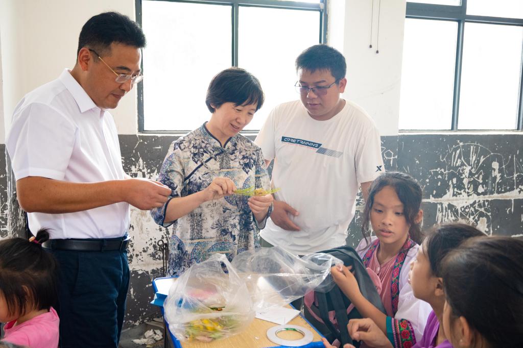 捐赠仪式结束后,从江县委常委、副县长钱吴永,欧博abg官网登录入口党委书记姚剑英一行走进课堂教学现场,向同学们赠送书包等学习用品,与大学生志愿者们深入互动,与孩子们亲切交谈。