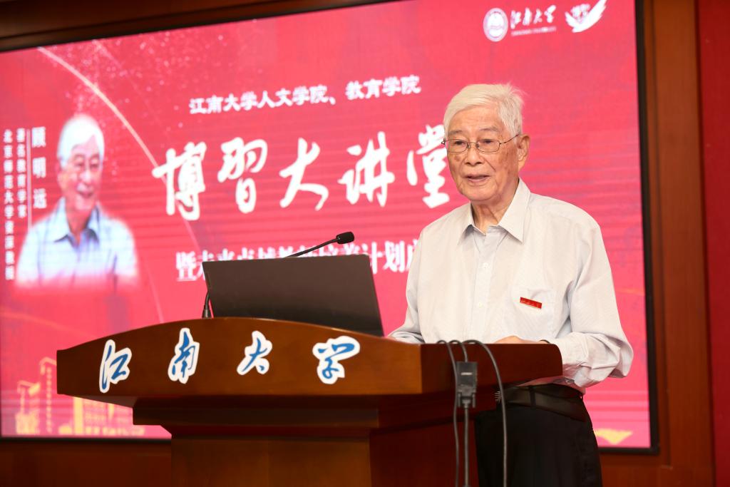 最后,顾明远先生主讲“博习大讲堂”第一讲,他以《未来卓越教师的关键素养》为题,结合习近平总书记对于教育的重要论述、自己从事教育七十五载的经历以及参加全国优秀教师代表座谈会、学习习近平总书记致信全国优秀教师代表讲话精神的感悟,分析了当代中国教育的基本情况、面临挑战和发展方向,阐述了“没有爱就没有教育、没有兴趣就没有学习、教书育人在细微处、学生成长在活动中”等教师的四条教育信条。顾先生认为从“年轻教师”成长为“优秀教师”需要经过五项修炼,即“愿意当老师”“不断锤炼本领”“终身学习能力”“创新教学理念”“教书育人的收获”。顾明远希望全体教师和师范同学能够弘扬教育家精神,牢记为党育人、为国育才的初心使命,树立“躬耕教坛、强国有我”的志向和抱负,掌握教育规律,提升自身修养,精进教学技能,努力成长成为新时代教育的“大先生”。