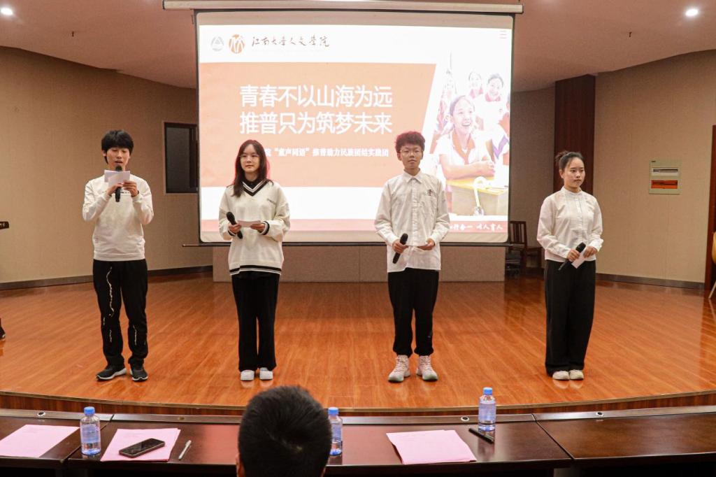活动伊始,李萍进行致辞,她充分肯定了暑期社会实践相关工作,并对人文学子继续深入开展实践育人活动提出三点希望,一是要胸怀天下,敢于梦想敢于实践,运用专业所学,服务社会需要,引领社会风尚;二是要服务大局,践行初心践行使命,将个人理想与家国担当融为一体,紧跟时代步伐;三是要知行合一,坚持进步坚持创新,不断提升人文和科技素养,主动扩展实践思路,创新实践方式,做到学思结合、知行合一。鼓励人文学子用实际行动践行“知行合一,以人育人”的院训精神,真正做到学以致用、学有所成。随后,邓昌海对欧博abg官网登录入口2023年暑期社会实践工作情况作总结介绍,王志顺宣读表彰决定,本次暑期社会实践共评选出7支优秀团队,9位先进个人和13位专项实践活动优秀个人,与会嘉宾分别为受表彰同学和团队颁发荣誉证书。