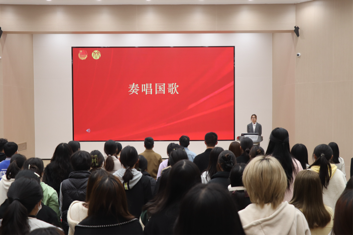 聘任仪式后,新一届学生会轮值主席许蓝月发言。她向上一届辛勤工作、无私奉献的全体学生会成员及耐心指导工作的老师致以诚挚的感谢,并分享了自己在学生工作中的收获,也传达了对学生组织全体成员的祝福。分团委学生副书记朱俐烨就今后如何加强学生组织建设和推动学生工作提出了设想与展望。她表示,学生组织成员应当明确职责、充分发挥优势、不断提高个人能力,为学院发展注入新的活力。