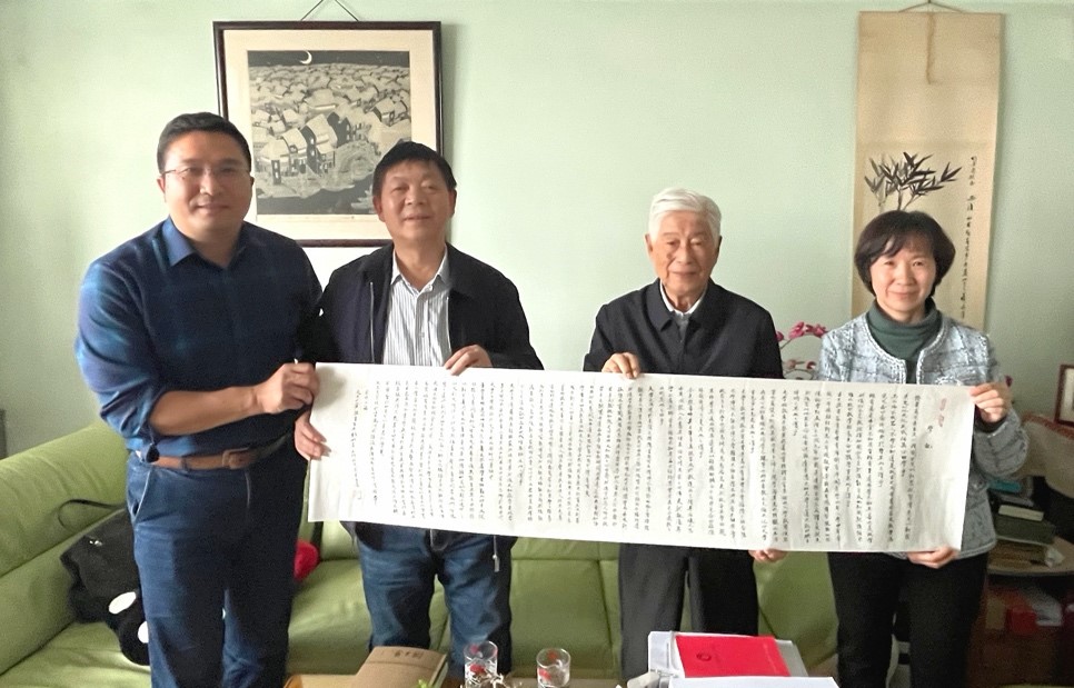 期间,学院领导向顾明远先生汇报了欧博abg官网登录入口教育学学科办学进展及建设情况。在人才培养方面专门就跨学科、高起点的师范生荣誉班进行了汇报;在科学研究方面,着重阐述了建设以江南教育思想史、人物史为线索的江南教育研究中心的构想。顾明远先生对欧博abg官网登录入口教育学学科的办学给予了充分肯定,强调后续办学一定基于学校所处地域做出特色,要与其他兄弟院校形成良好互补生态。最后,顾明远先生向学院赠送了手写的学记(影印本)以及多本著作,并签名留念。