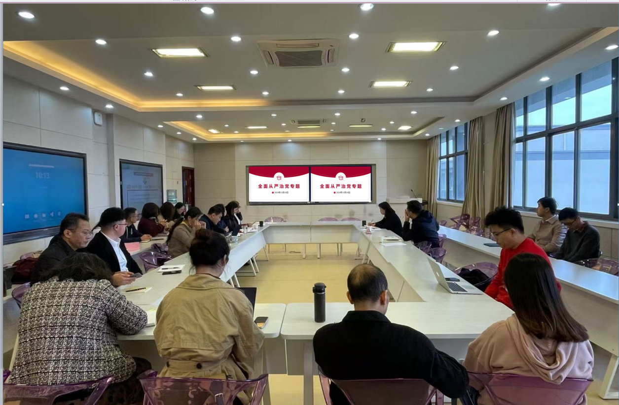 王晖围绕全面从严治党专题,领学了校2024年全面从严治党工作要点及关于实施党委(党组)意识形态工作责任制的相关文件精神。她指出,学院党委要坚决扛起党委主体责任,严格执行全面从严治党责任清单制度,健全各负其责、统一协调的管党治党责任格局。