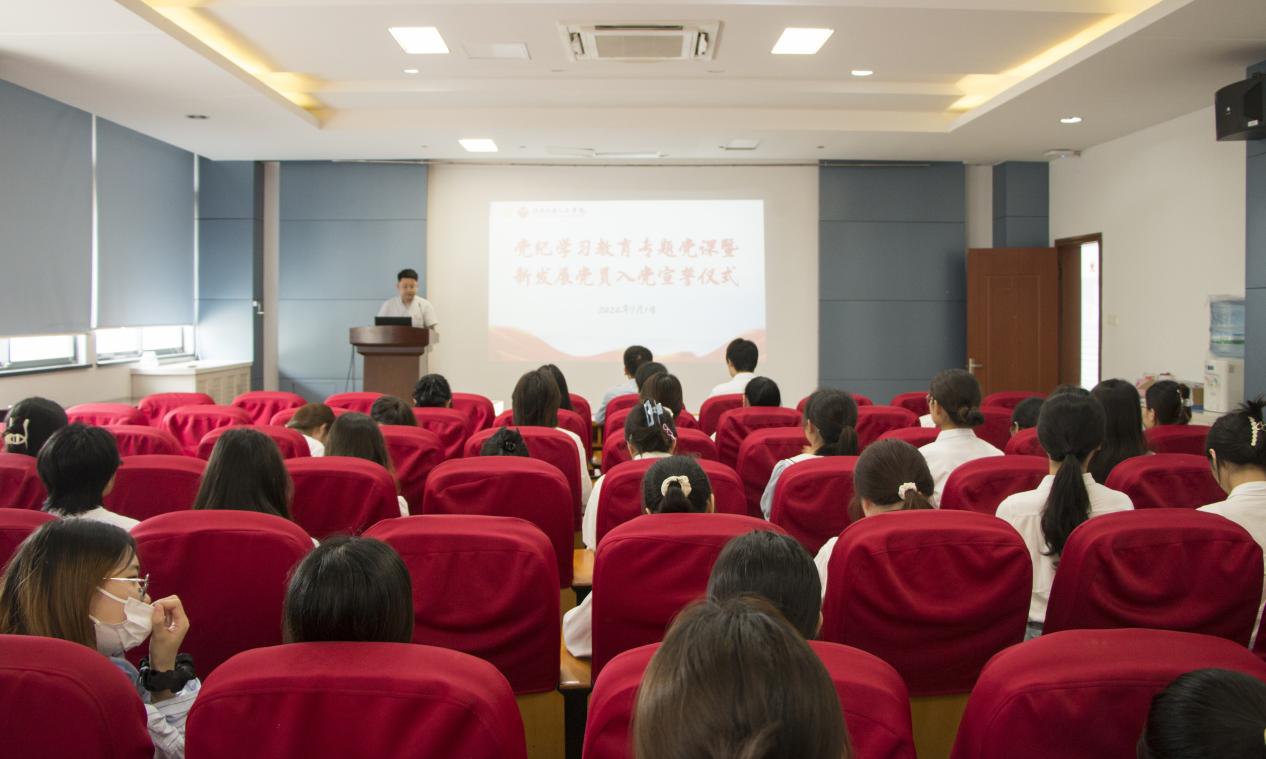 学以致用,知行合一。姚剑英代表学院党委向所有光荣入党的新党员表示热烈的祝贺并讲授《学条例 守纪律 做奋发有为好青年》党纪学习教育专题党课。她从“深刻领会习近平总书记关于加强纪律建设的重要论述”“准确把握新修订《条例》的主旨要义”“学习贯彻《条例》青年何为”三个方面讲授党课。姚剑英表示广大党员要坚定理想信念、寻找差距、发挥模范,做好学习成效内化、深化、转化,把党纪铁规转化为心中敬畏,把他律要求转化为内在追求,在学纪、知纪、明纪、守纪中不断展现青年新作为。