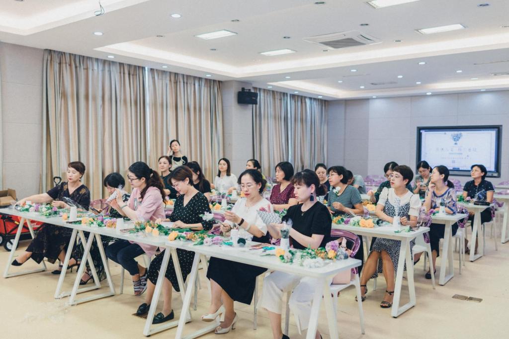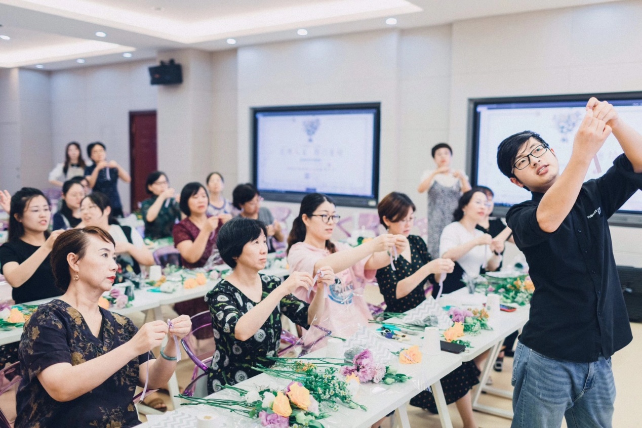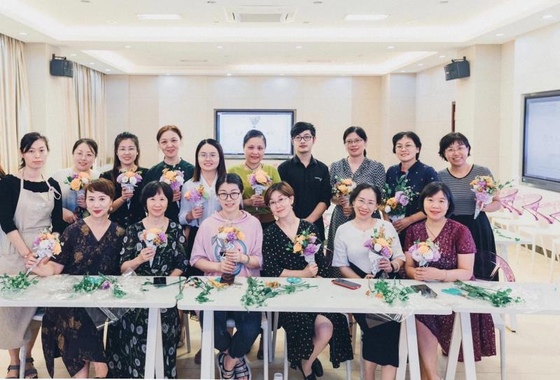 “花境鲜花坊”的花艺师为学院教师传授创意插花的基本方法,在花艺师的指导下,从制作底座、剪枝到插花造型老师们边听边进行创意插花创作实践。在花香扑鼻的意境中,在浓淡适宜的季节里,老师们用灵巧的双手,尝试着用花艺去创造美好。大家都觉得度过了一个愉悦心境,品享生活的美好的下午。
