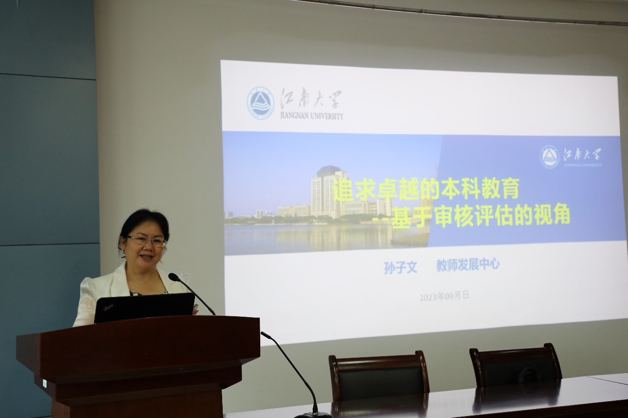 随后,孙子文作了主题为《追求卓越的本科教育——基于审核评估的视角》的主旨报告,她详细剖析了本轮本科教学评估工作的重点、解读了本科教学质量保障要求,以及学校的卓越教学开展情况,并指出未来的教育是立德树人的教育、是追求卓越的教育。