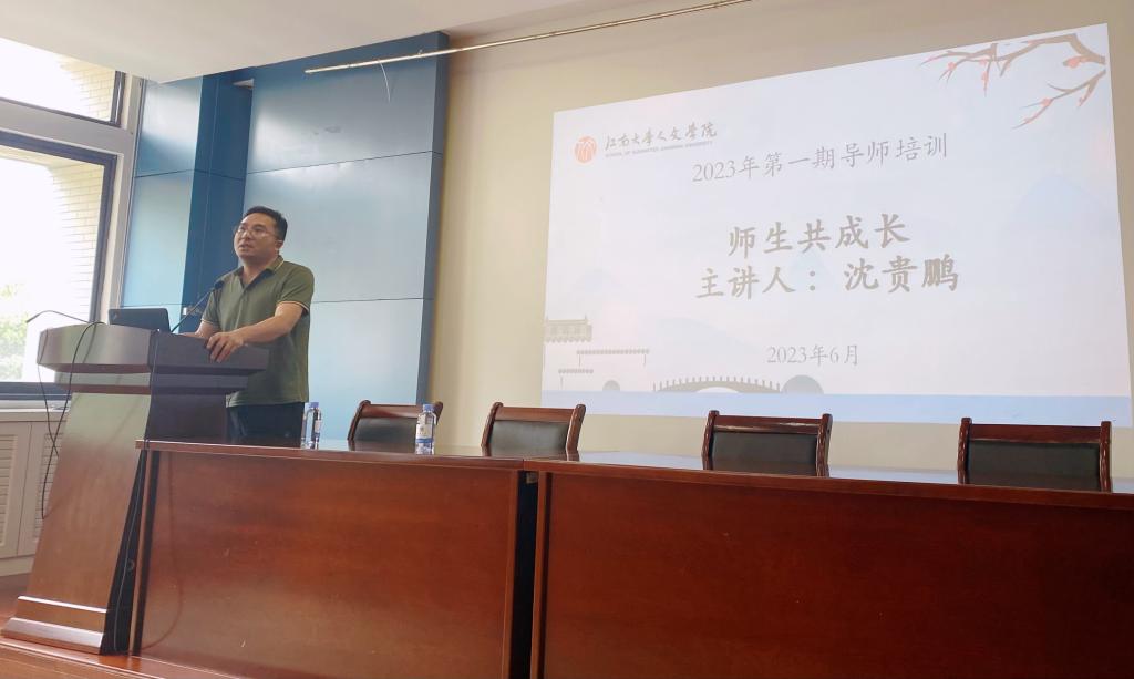 伍红林首先介绍了沈贵鹏在研究生培养方面取得的突出成绩,并就学院当前研究生论文盲审和学科发展情况进行了简要说明,指出了当前研究生培养过程中存在的问题,强调了研究生导师培训的必要性。