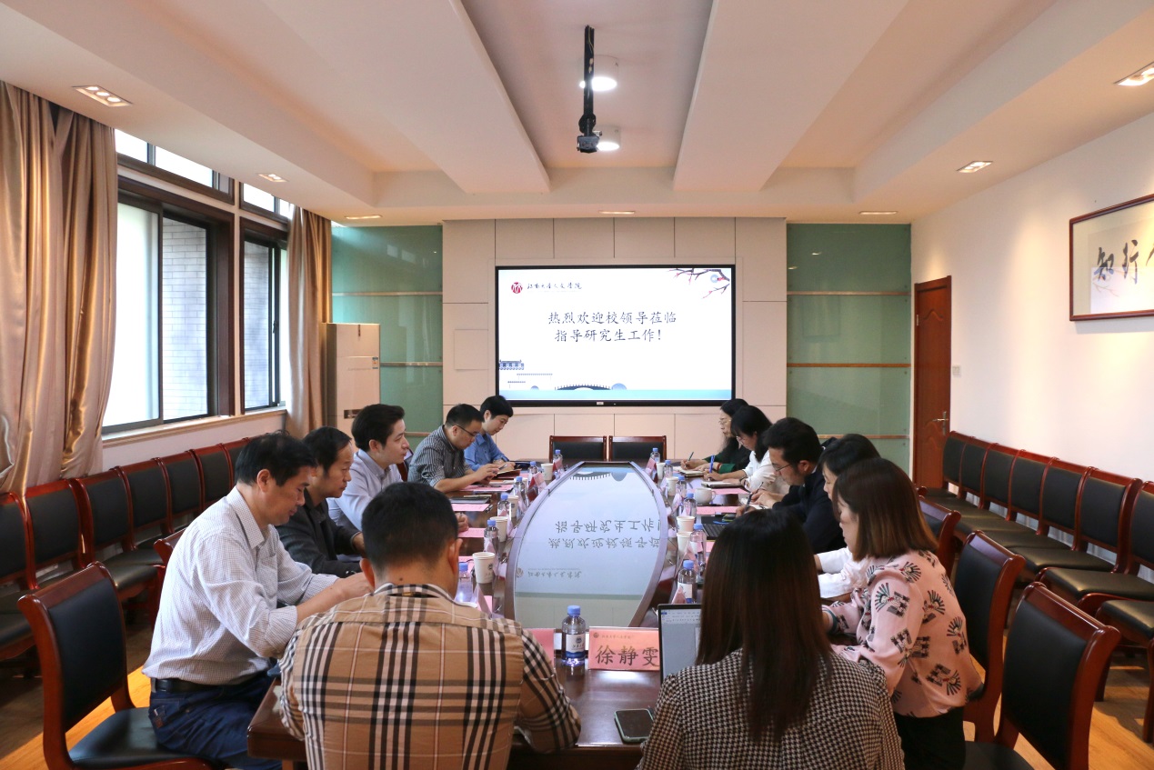 10月19日上午,校党委常委、副校长马鑫,校党委常委、副校长倪松涛,党委研究生工作部部长、研究生院院长吴小俊,研究生院副院长潘如如、姚文生,以及研究生工作部王维懿一行6人赴欧博abg官网登录入口调研研究生教育管理工作。欧博abg官网登录入口党委书记姚剑英,副院长(主持工作)伍红林,党委副书记、副院长李萍,副院长于书娟、王芳、研究生秘书、研究生辅导员参与座谈。会议由吴小俊主持。