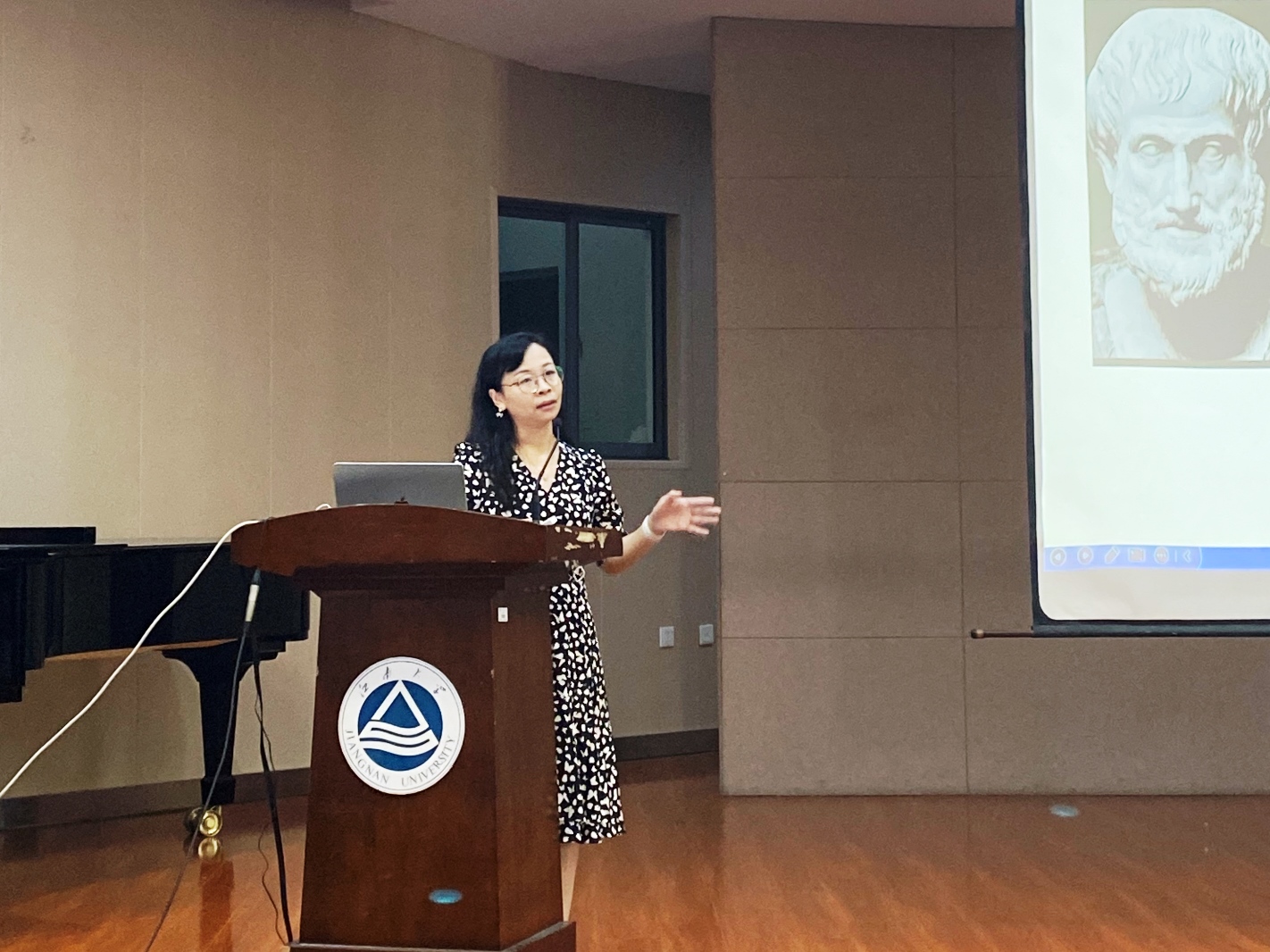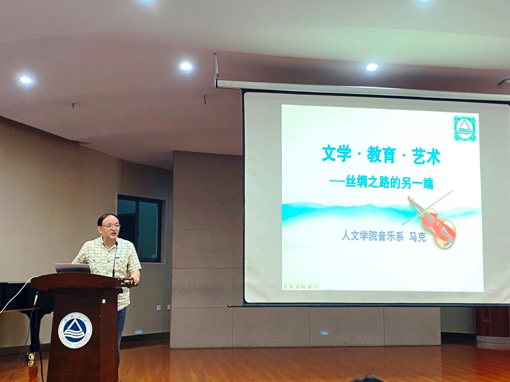 马克围绕“文学·教育·艺术——丝绸之路的另一端”为主题,带领大家领略了意大利北部音乐文化的魅力,从城市发展、历史名人、文学和艺术的交融为出发点,引导学生从发展脉络中探求未来歌剧发展的趋势。