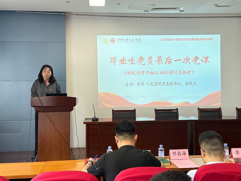 会上,张雅静全面解读了《毕业生党员须知》并作了毕业生党员组织关系转移工作专题培训。2024届汉语言文学专业本科生李婕作为毕业生代表宣读并签署《文明离校承诺书》。